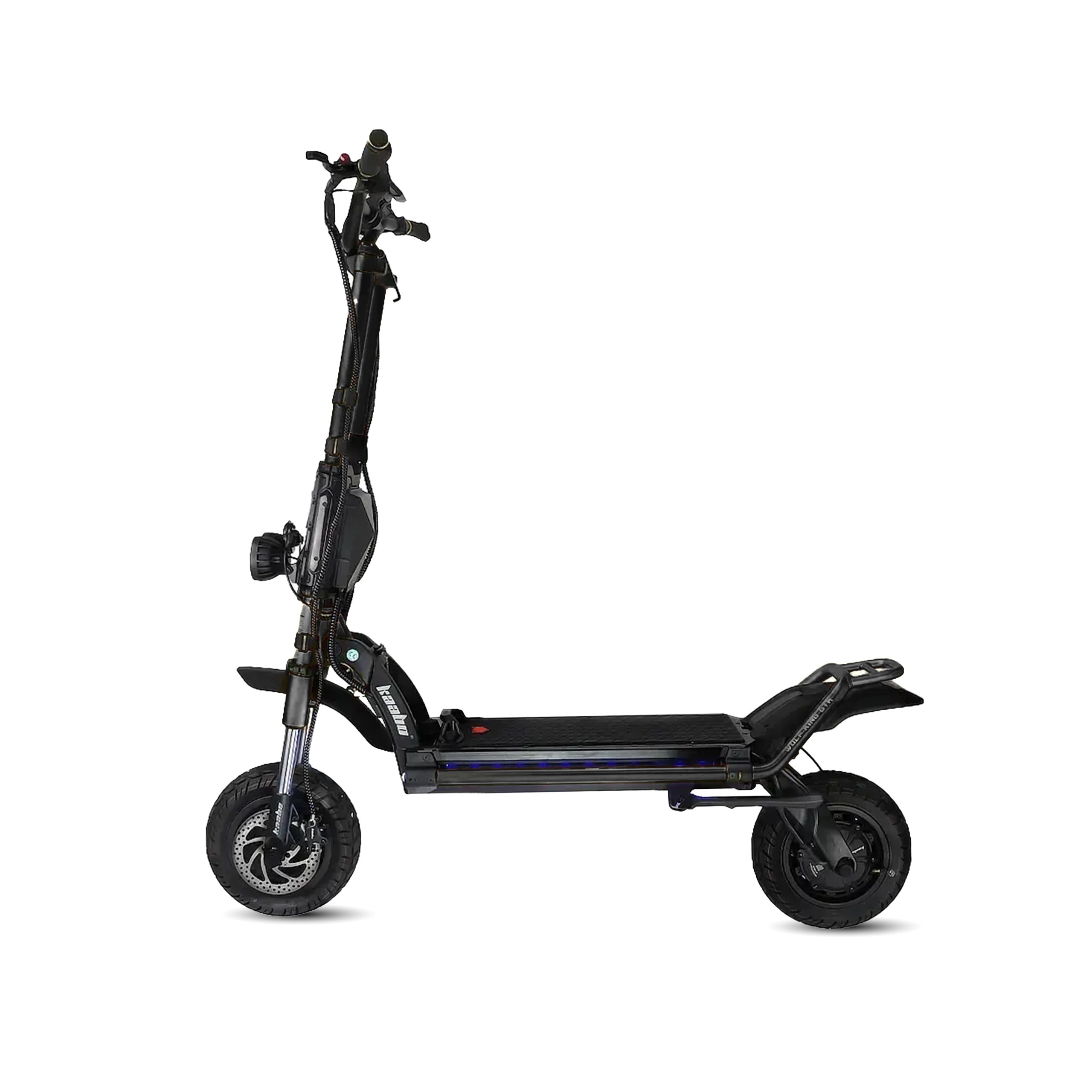 Kaabo Wolf King GTR står i skärningspunkten mellan säkerhet, prestanda och stil och är konstruerad för den kräsne förare. Den har toppmoderna hydrauliska bromsar med ABS för oöverträffad stoppförmåga, kompletterade med slående bak-, fram- och plattform belysning för förbättrad synlighet och design. elektrisk skoter är byggd för att hålla och förkroppsligar motståndskraft och elegans. Säkerhetsarsenalen utökas med de större, 12" x 4" ultrabreda slanglösa pneumatiska däcken, som har utformats i samarbete med CST för att erbjuda ett nytt hybriddäck som ger en unik och revolutionerande elektronisk stabilisering och greppkontroll i alla hastigheter. Kombinationen av hållbar konstruktion, avancerade säkerhetsfunktioner och innovativ däckteknik gör Wolf King GTR till en pålitlig, snygg och högpresterande följeslagare på alla resor.