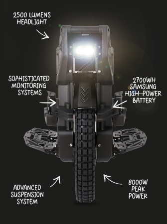 Denna elektriska enhjuling ligger i framkant när det gäller PEV-teknik. Det sofistikerade styrkortet klarar en enorm strömstyrka på 840 A och hanterar kraften för att ge en stabil körning. Displayen håller hastighet, batteristatus och körsträcka väl synliga, vilket gör det enkelt att hålla koll på din kördynamik i realtid