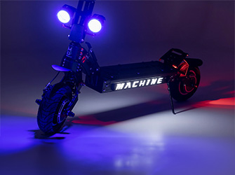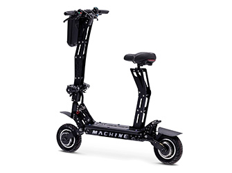 Den eldrivna Machine Fox elektrisk skoter kombinerar kraft, stil och tillförlitlighet. Den har ett sportigt utseende och en robust konstruktion för optimal prestanda i alla terränger. Denna elektrisk skoter gör det enkelt att resa med en topphastighet på 43 mph (70 km/h) i terräng och ett batteri som ger upp till 43 mi (70 km) körning på en enda laddning.