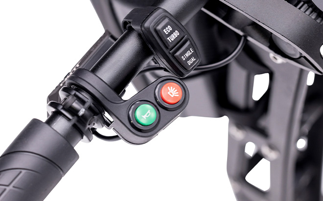 Utnyttja den råa kraften hos dubbla motorer med en kombinerad toppeffekt på 3200 W. Tillsammans med det robusta 52V 20,4Ah-batteriet kan du köra upp till 70 km på en enda laddning. Det handlar inte bara om hastighet, utan även om uthållighet och distanser som du tryggt kan tillryggalägga.