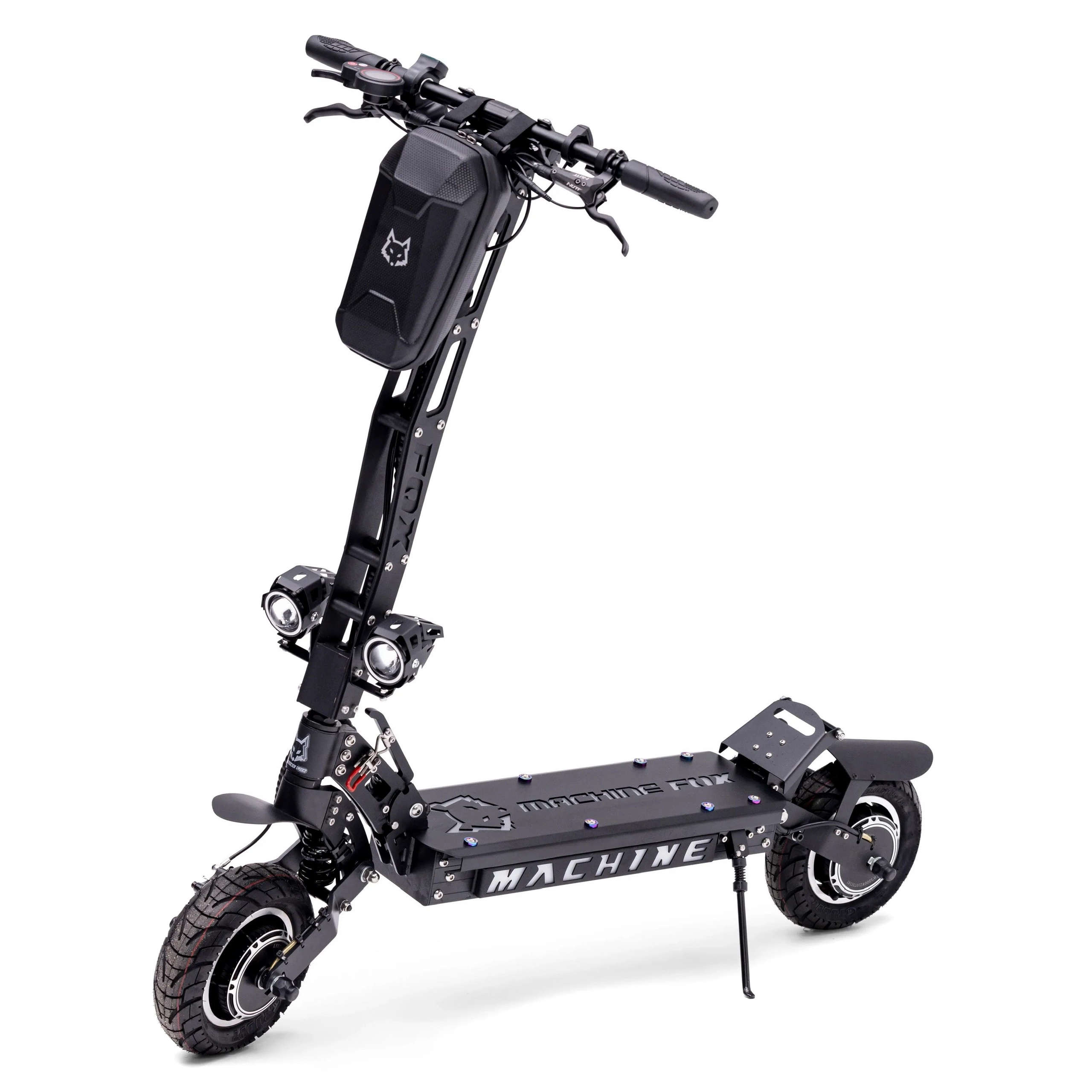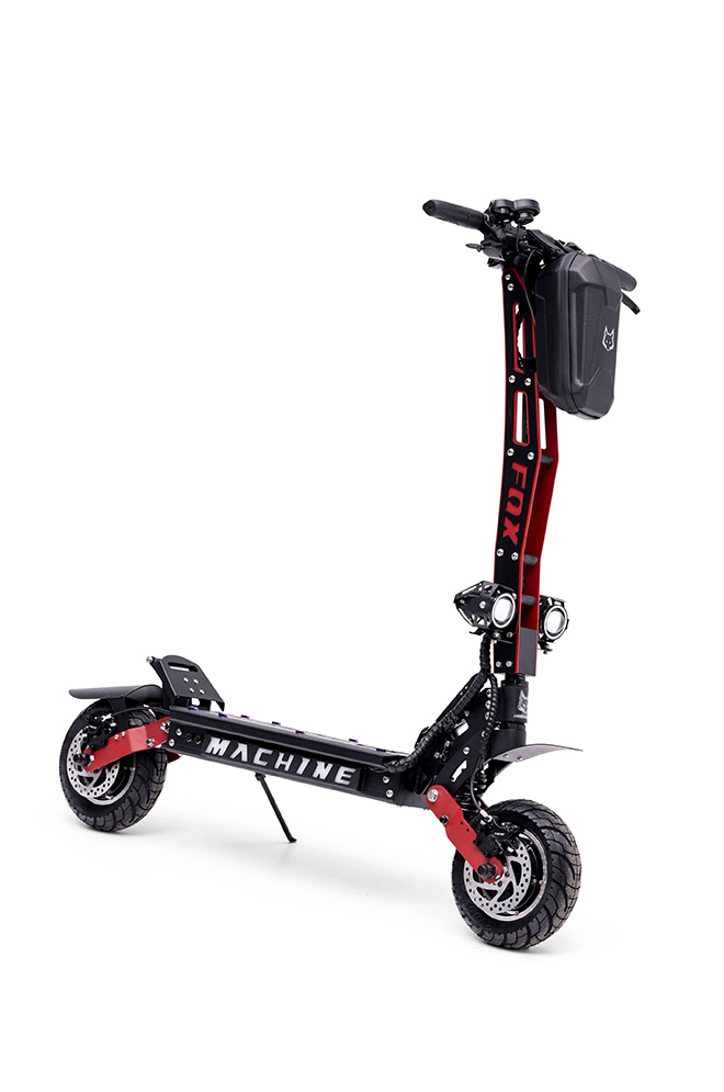 Fox Machine Fox eleganta, moderna design gör att du sticker ut från mängden. Varje del av elektrisk skoter är avsedd för att bidra till en säker körning. Det är ett fordon som är byggt för tuffa miljöer. Det breda plattform och de robusta stänkskärmarna gör körningen bekväm. Välj en modell som passar din stil&npanel; elektrisk skoter finns i både svart och rött.