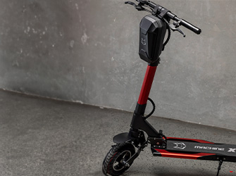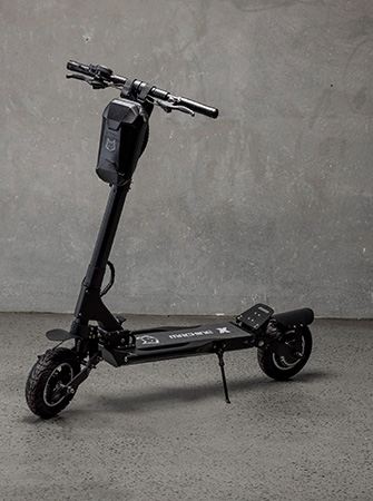 utforska Machine X Transporter elektrisk elektrisk skoter1800W toppeffektmotor, som utan ansträngning rymmer upp till 150 kg (330 lbs). Den garanterar en smidig körning med fjädring fram och bak samtidigt som den uppfyller säkerhetsnormerna för bilindustrin med dubbla skivbromsar.
