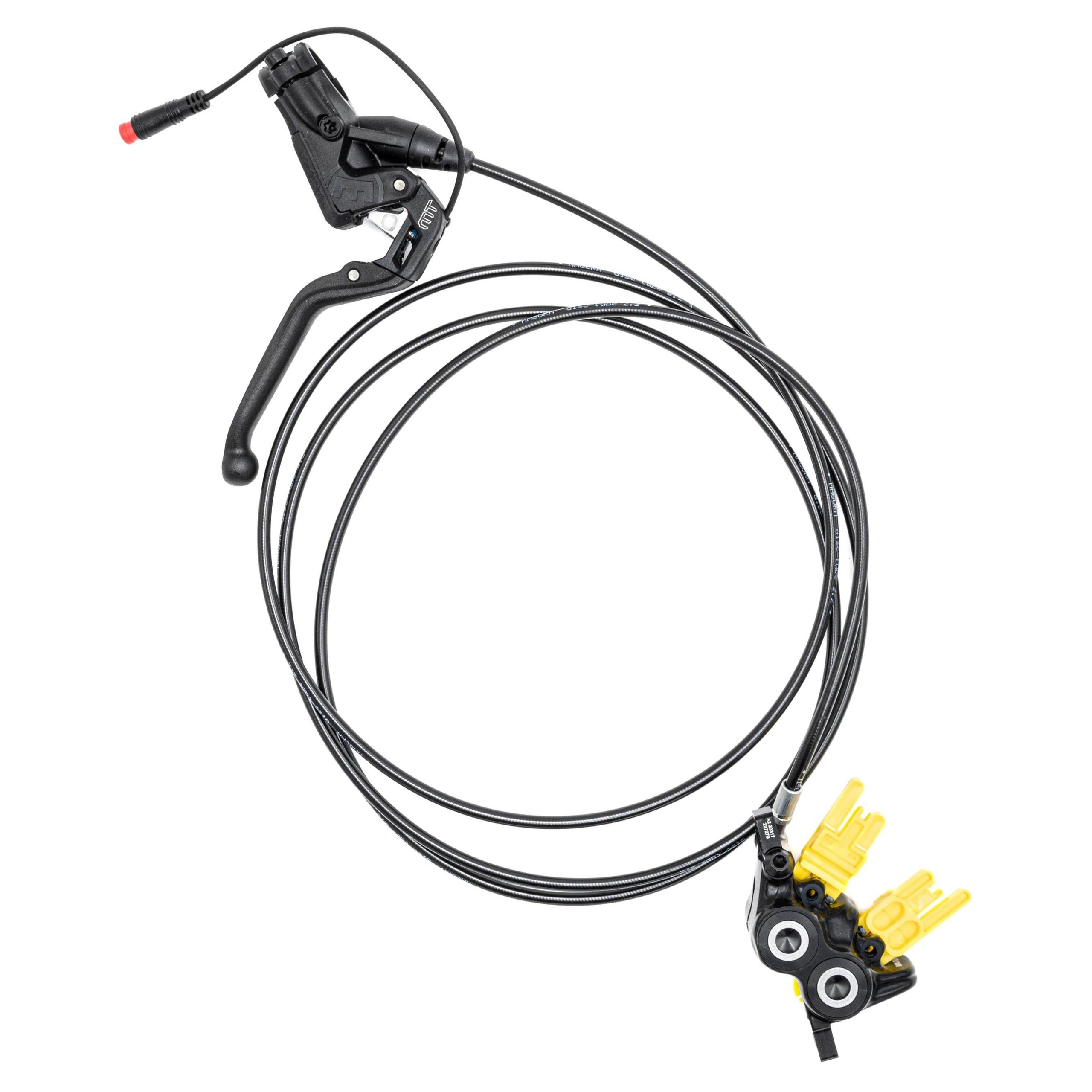De här bromsarna stoppar inte bara hjulen, de stoppar även motorn (med hjälp av en avstängningsmekanism). Magura MT5E handlar om smart bromsning. En mekanisk omkopplare inuti bromshandtaget aktiverar bromsljuset redan innan du faktiskt bromsar, vilket garanterar omedelbar synlighet.