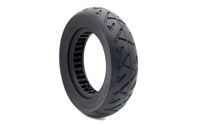 Den här reservdelen är tillverkad av ett mjukt men ändå robust gummi och absorberar stötar väl. Det ger dig en smidig åktur samtidigt som det skyddar de viktiga delarna av din elektrisk skoter&mpanel;motor, styrenhet och batteri&mpanel;från onödigt slitage.