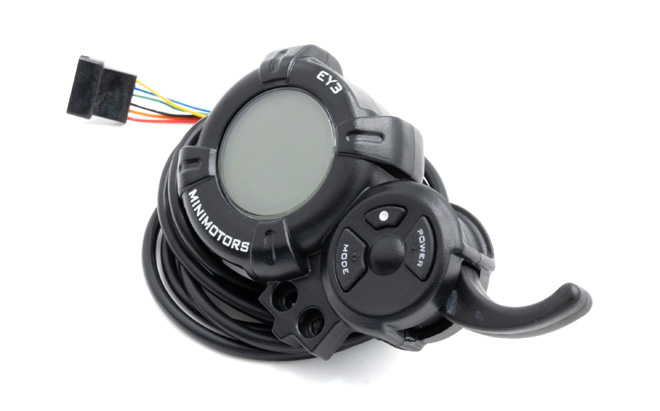 I sådana situationer kommer Minimotors Eye EY3 panel-kortet till din räddning. Ersättningsdelen kopplas till styrenheten och batteriet och ger en tydlig visning av körinformation. Den förbättrar användarupplevelsen genom att ge intuitiva kontroller nära till hands. Med bara några få knappar kan du starta fordonet, aktivera batterisparläget eller lamporna och ändra hastighetsläget.