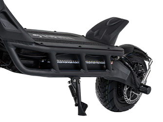 Dubbla borstlösa motorer ger en kombinerad effekt på 3000W. Toppeffekten på 8400 W innebär att du kan räkna med rejäl acceleration och vridmoment. Med den integrerade 50A dubbla styrenheten är elektrisk skoter:s energidistribution jämn och dynamisk. Är du redo att ta dig an en utmaning? Njut av hastigheter på upp till 53mph (85kph) på en racerbana.