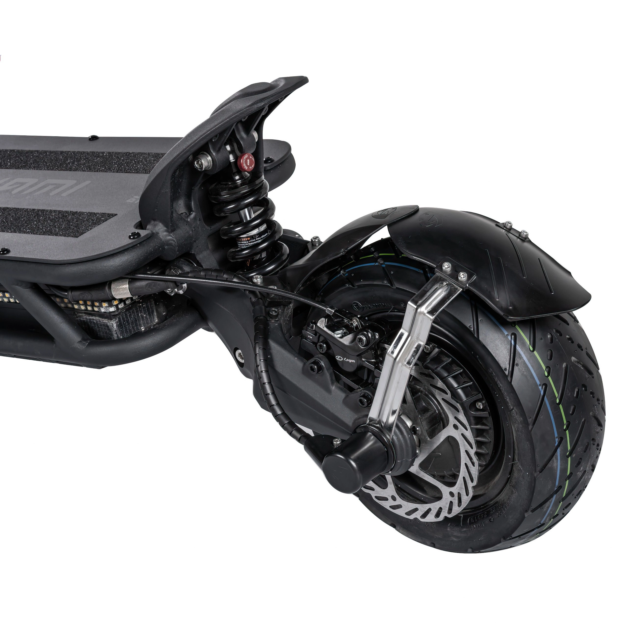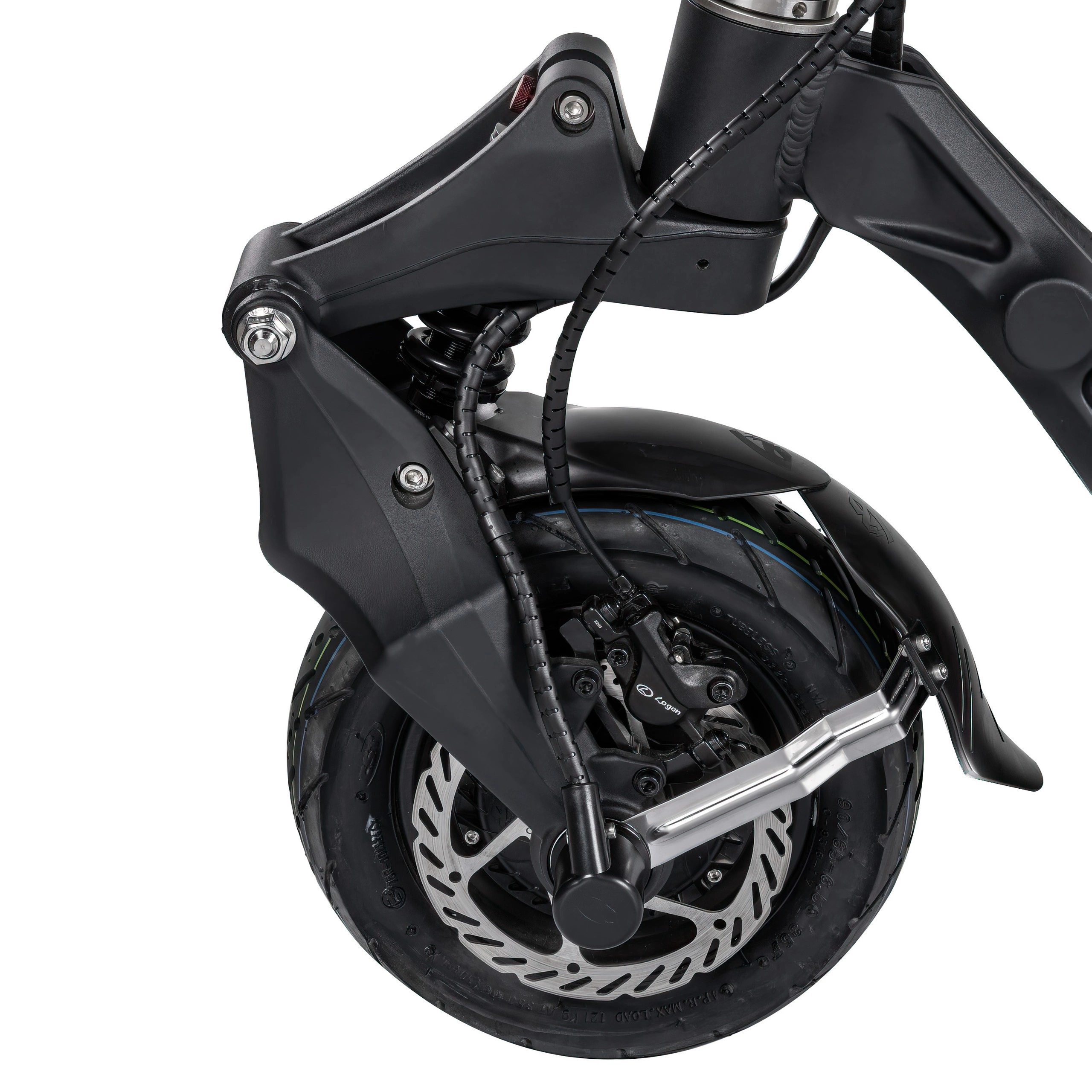 Att stanna så fort du trycker på bromshandtaget är viktigt. Nami kompromissar inte här. Utrustad med hydrauliska Logan-bromsar fram och bak med stora skivor säkerställer elektrisk skoter att du har full kontroll när det är som viktigast. Dessutom har den ett integrerat elektriskt bromssystem för ökad effektivitet.