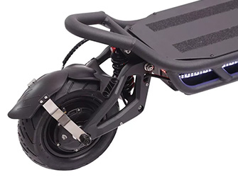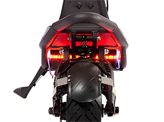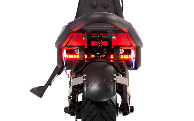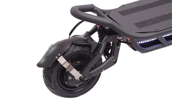 Den elektriska elektrisk skoter erbjuder viskande tyst prestanda utan att offra kraft tack vare 50A sinusvågskontroller. Två 165 mm justerbara hydrauliska spiralfjädrar och 11-tums slanglösa däck ger smidig körning i alla terränger. Det intensivt ljusstarka frontljuset på 2000 lumen ger en tydlig väg i dåliga ljusförhållanden. Det högkvalitativa motorcykelinspirerade hornet ser till att du hörs när du behöver det. Det extra breda styret är extremt bekvämt under långa turer. Om du är lång&mpanel;är det här en bonuspoäng för dig.