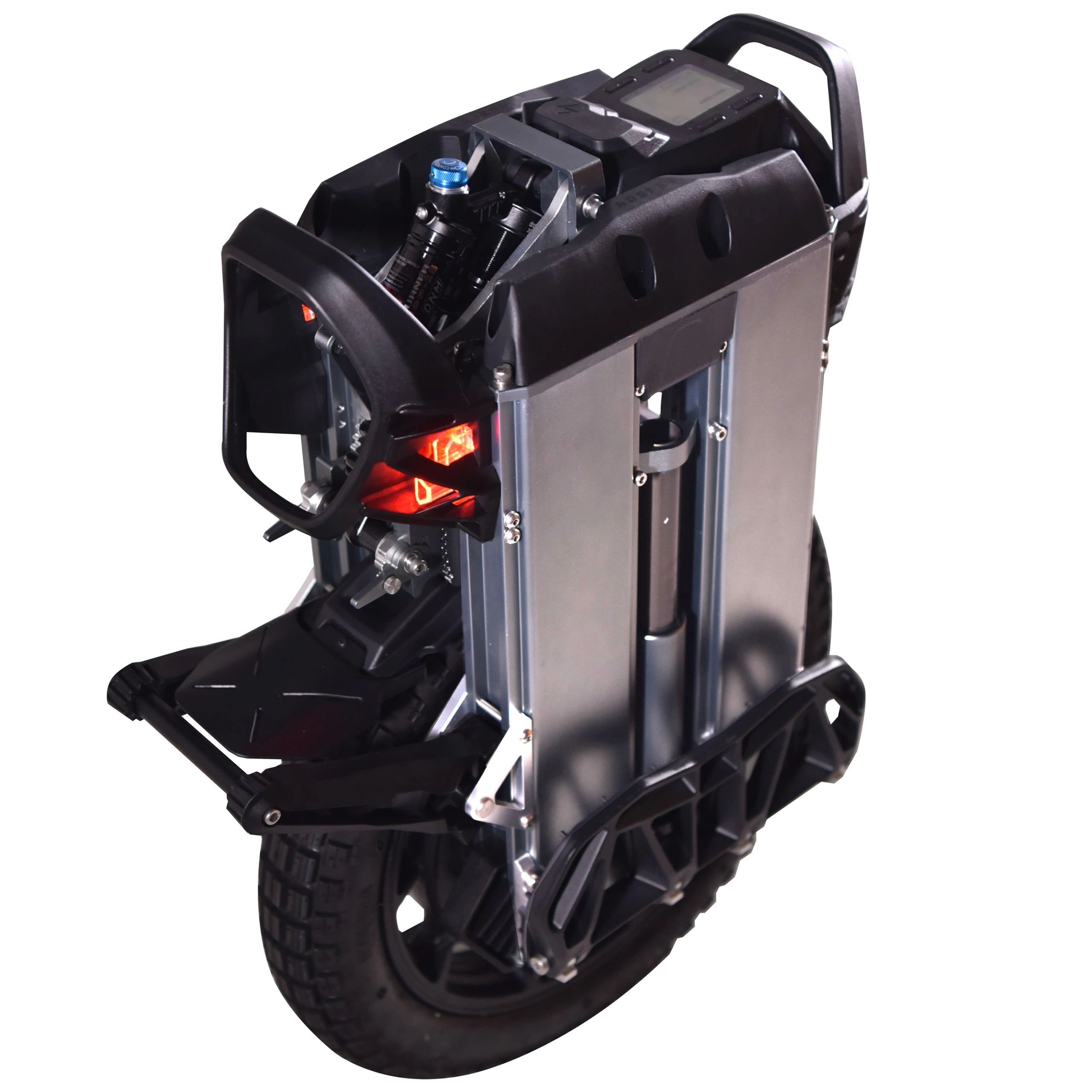 Nosfet Apex EUC 50S ändrar spelreglerna för terrängcyklar användare. Den tar sig an de tuffaste stigarna och glider ändå smidigt fram på trottoaren. Det som skiljer den från mängden är dess justerbara fjädringssystem. Du kan tävla genom skogar och ta dig an branta sluttningar. Den elektriska enhjulingen är redo att gå ännu längre, snabbare och i tuffare terräng än du någonsin har provat