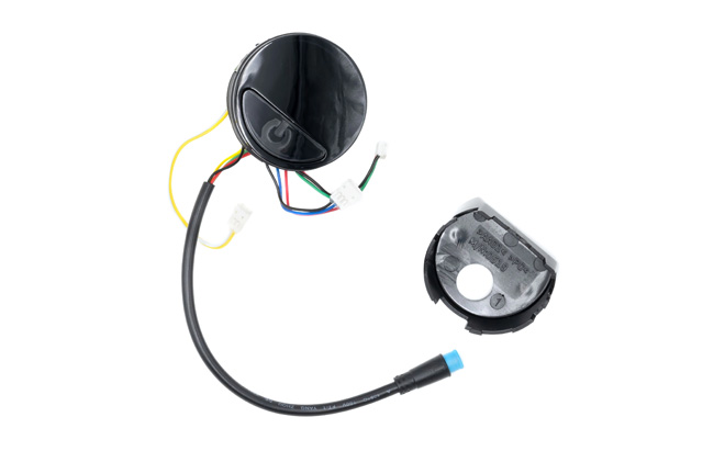 Den centrala styrenheten har en display och kontrollknappar. Den visar alla nödvändiga mätvärden: hastighet , batterinivå, val av läge och tillryggalagd sträcka.