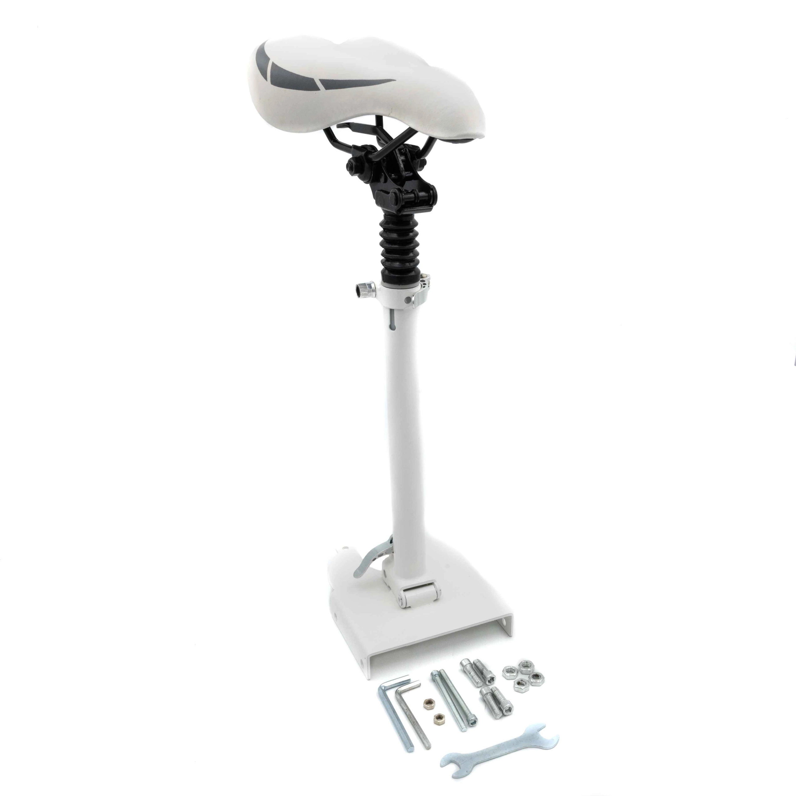 Extrasätet fästs på ramen på elektrisk skoter. Monteringen kan göras på några minuter. Allt du behöver är en grundläggande uppsättning verktyg. Om du tröttnar på sitsen efter ett tag kan du återställa elektrisk skoter till dess tidigare utseende.