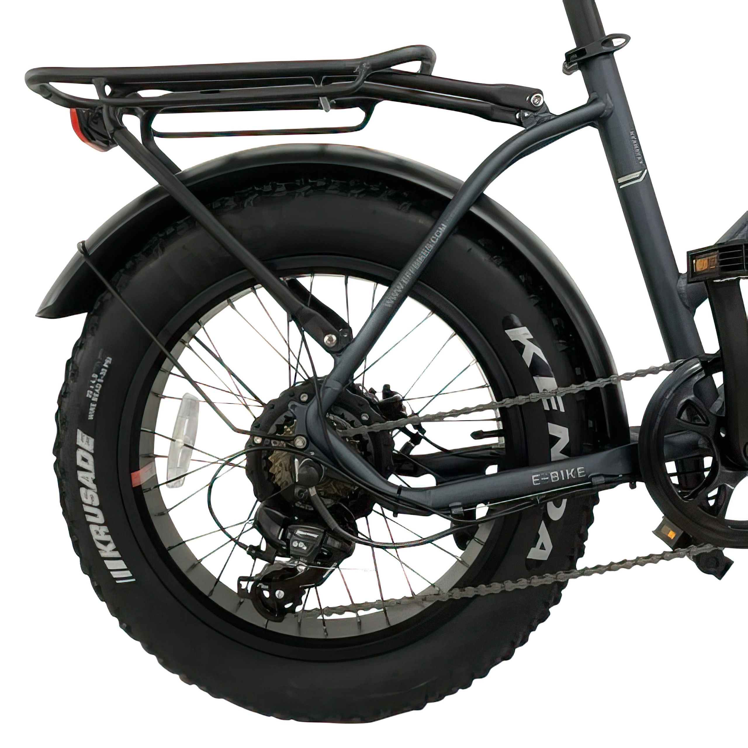 Kenda 20" x 4.0 fatdäcken ger utmärkt grepp och stabilitet i olika terräng, inklusive leriga stigar och släta trottoarer, tack vare deras placering på dubbelväggiga aluminiumfälgar som stärker cykelns hållbarhet.