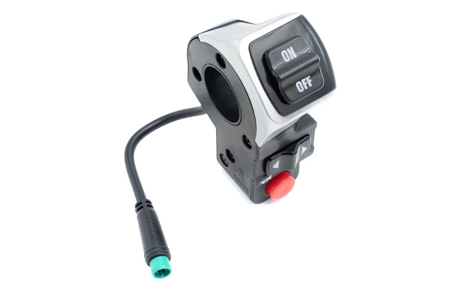 Denna multifunktionella strömbrytare är utformad för att förbättra säkerheten. Den är bekvämt placerad på Hitway H5-styret och ger dig tillgång till elektrisk skoter:s huvudreglage utan att du behöver distraheras.
