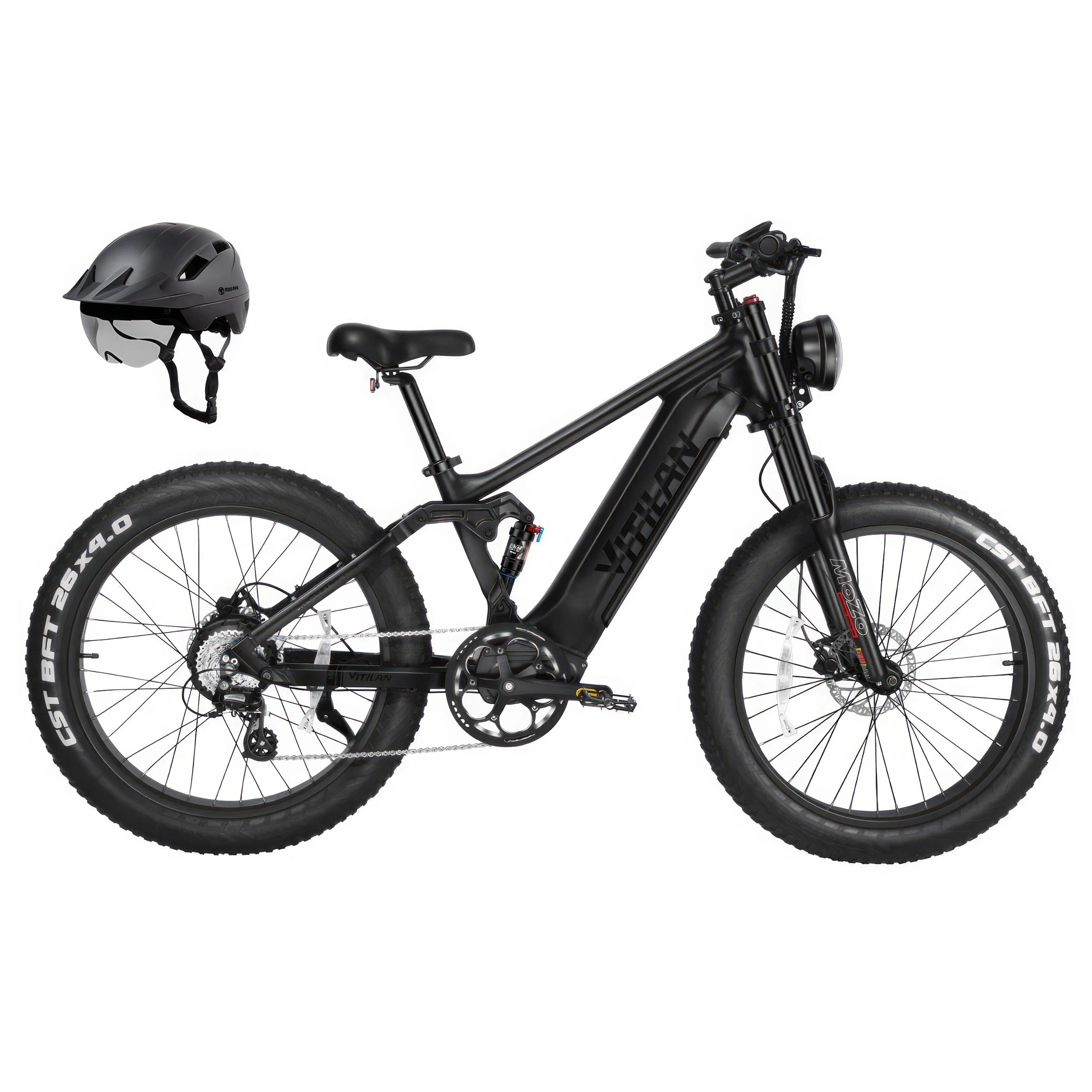 Vitilan T7 är utrustad med MOZO 26" hydrauliska dubbla fjädringsgafflar och en fyrlänkad fjädringsmekanism, vilket ger en exceptionellt smidig körning i tuff terräng. Oavsett om du navigerar på grusvägar, snöiga vägar eller ojämna bergsstigar absorberar cykelns avancerade fjädring stötar och ojämnheter, vilket förbättrar den övergripande komforten och stabiliteten.
