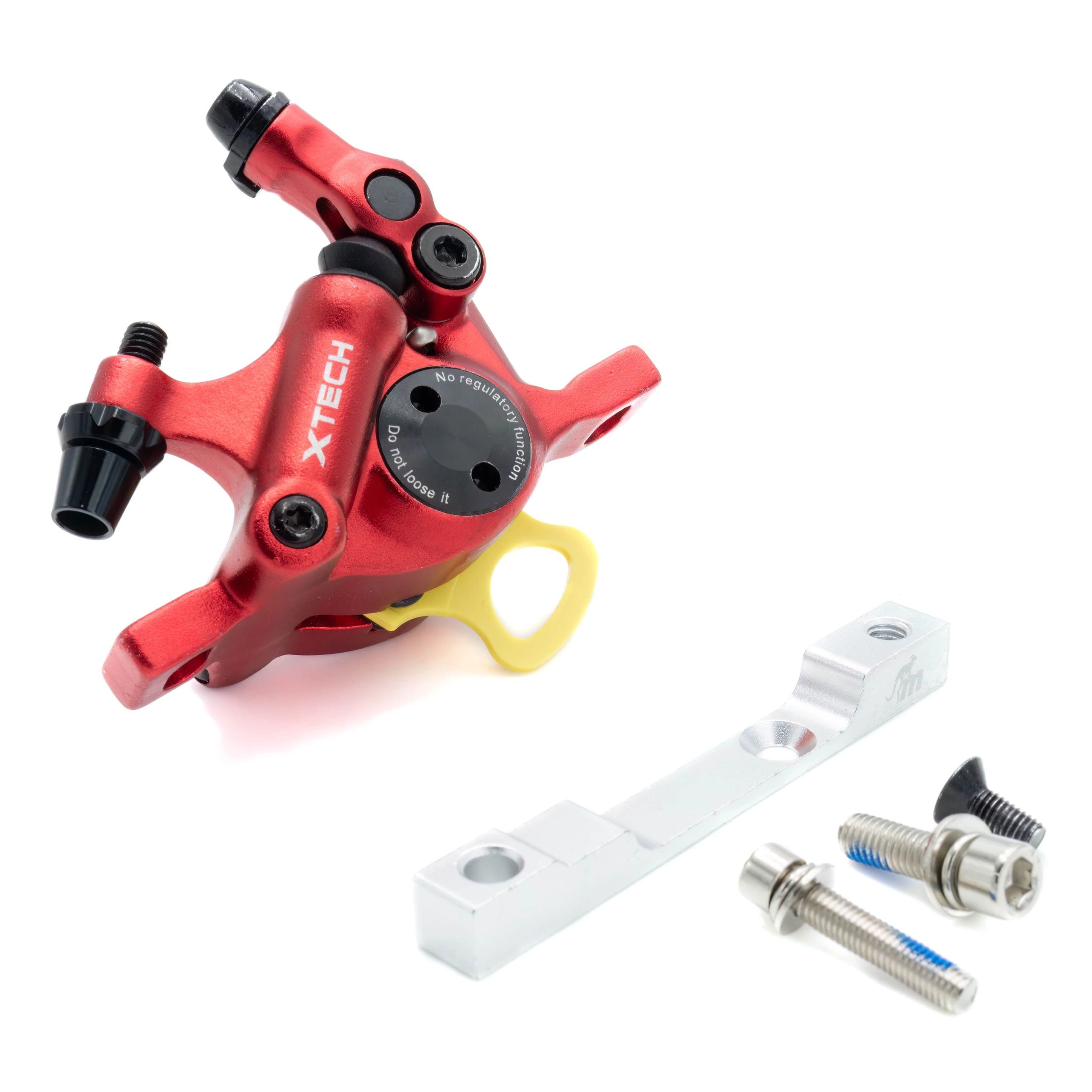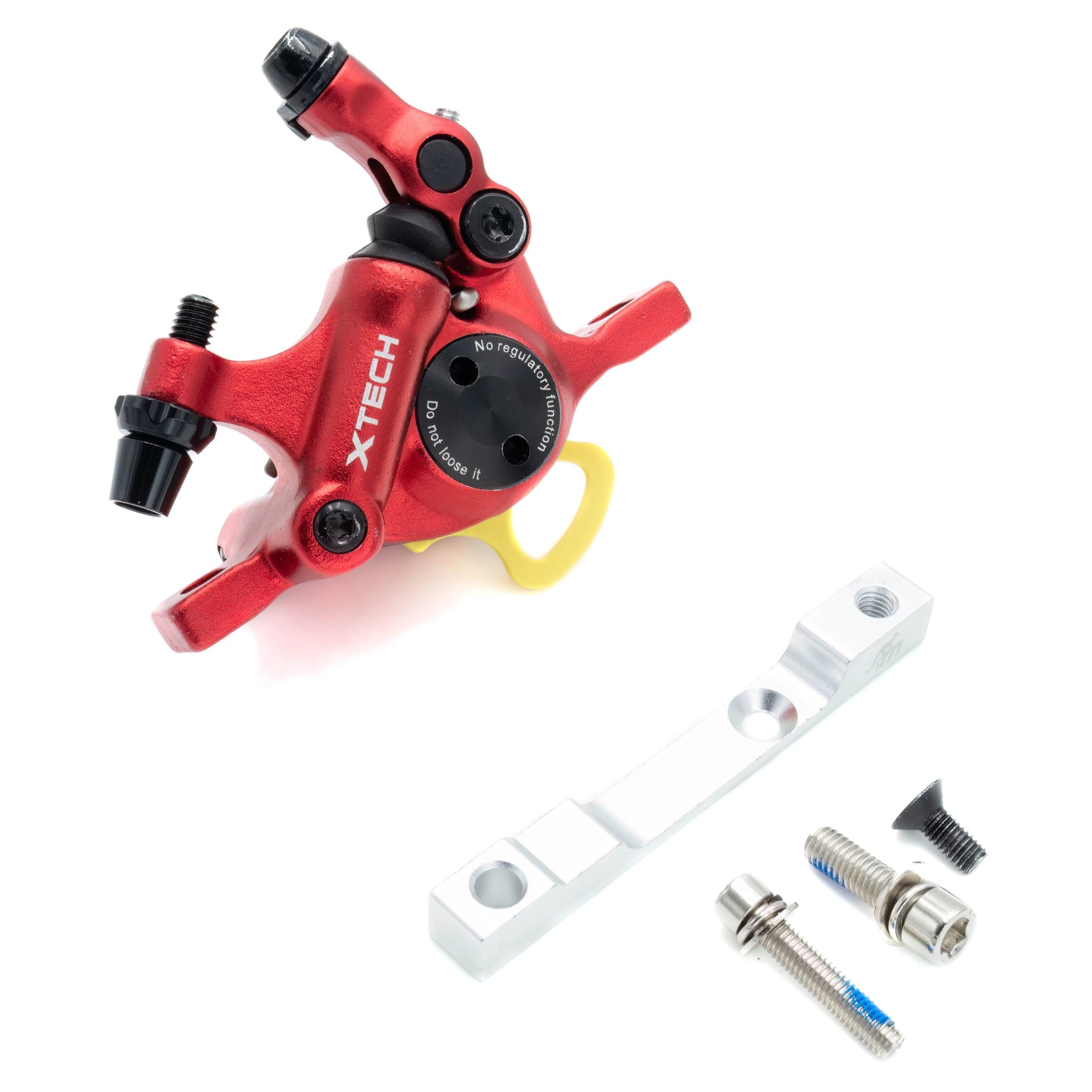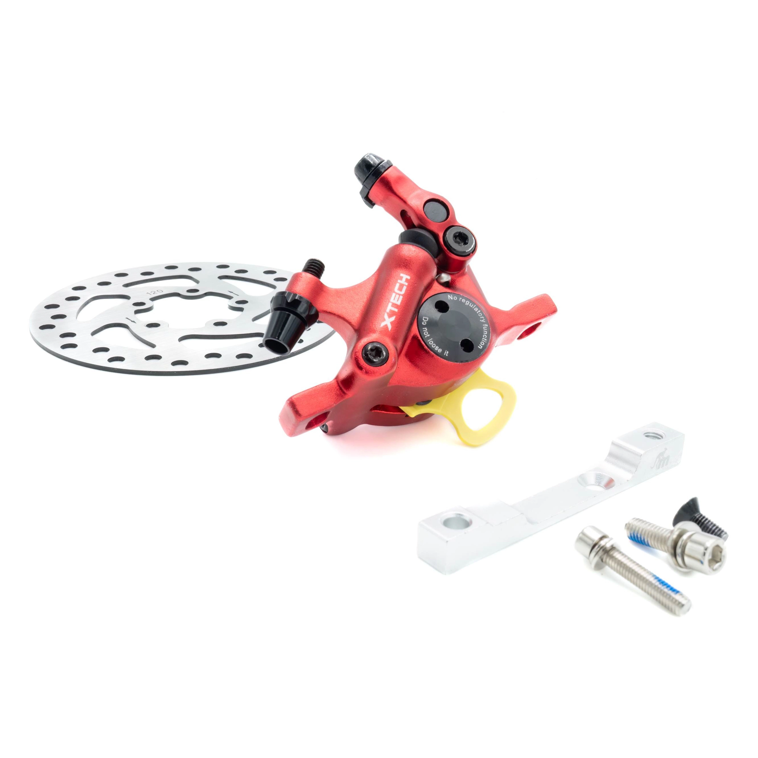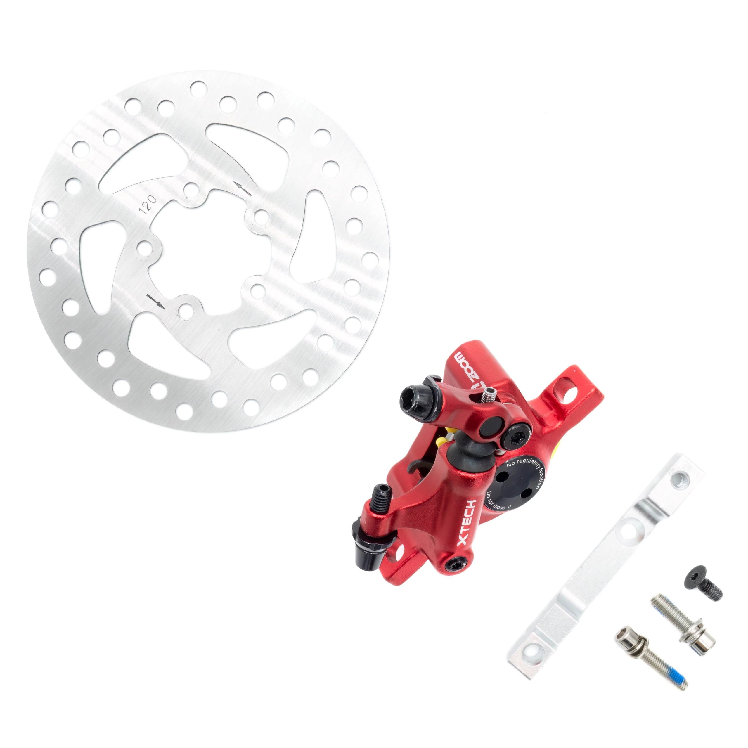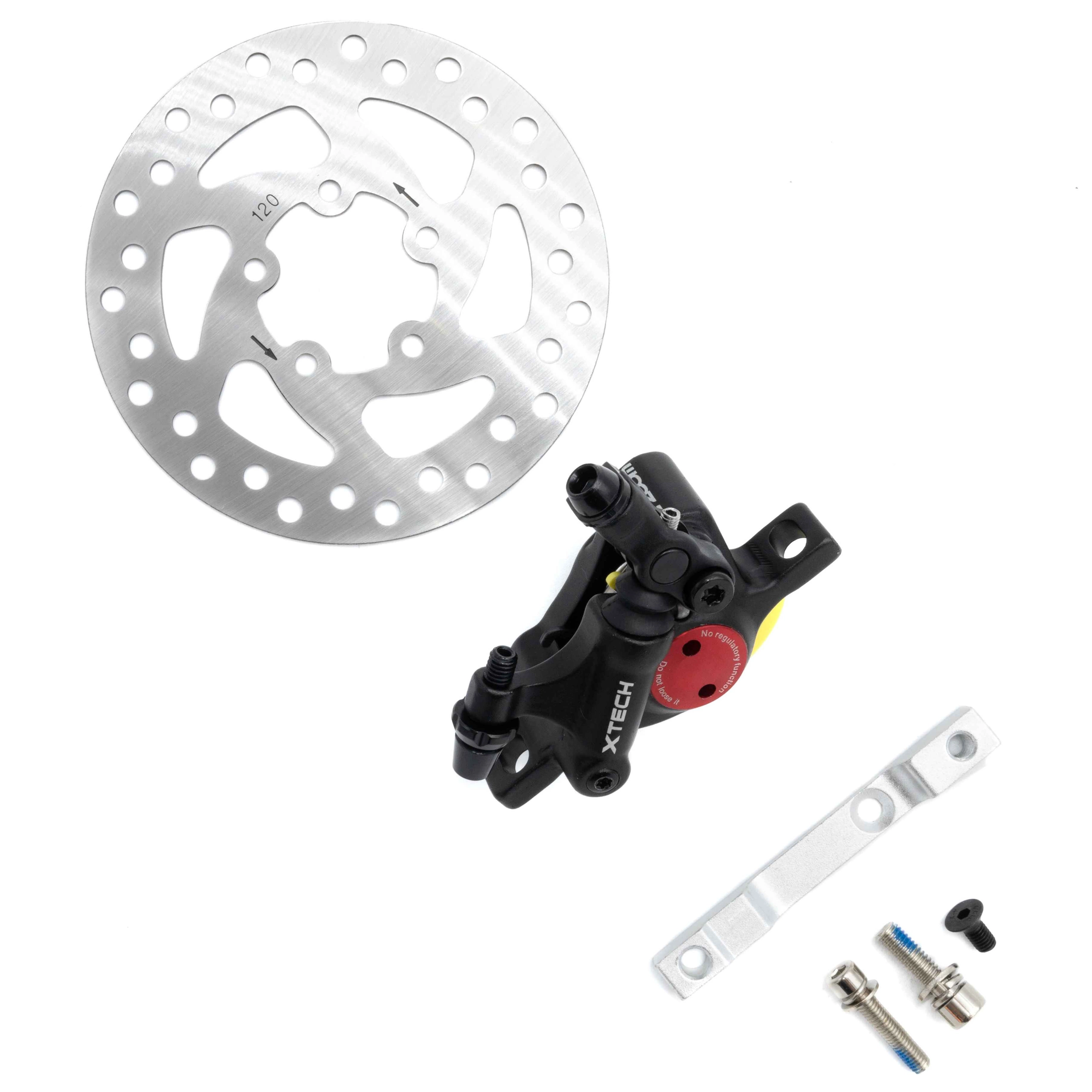 X-tech-bromssatsen innehåller ett X-tech-bromsok, ett distansok och en 120 mm bromsskiva.